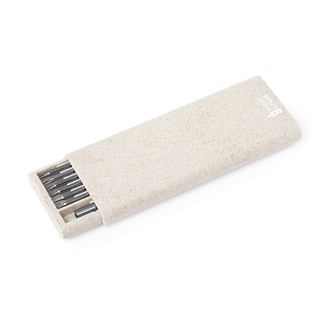Ensemble d’outils pratique fabriqué en canne à blé et découpe intérieure pour un ajustement parfait. Comprend un tournevis de précision avec 24 accessoires, composé de différentes pointes : cruciformes, allen et plat. Avec Logo canne à blé inclus. Présenté individuellement dans la boîte de conception kraft. La canne à blé encourage l’utilisation de matières premières naturelles, réduisant ainsi les émissions polluantes.